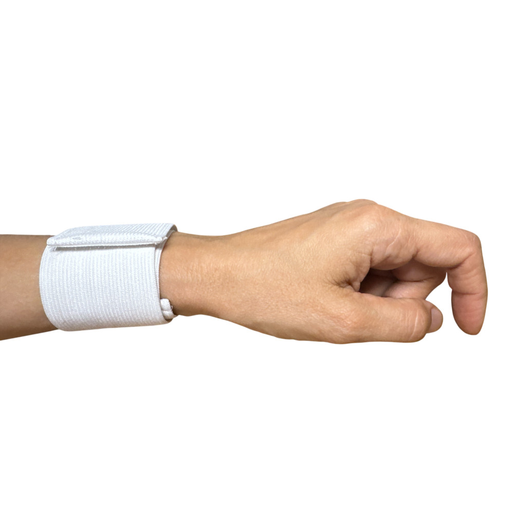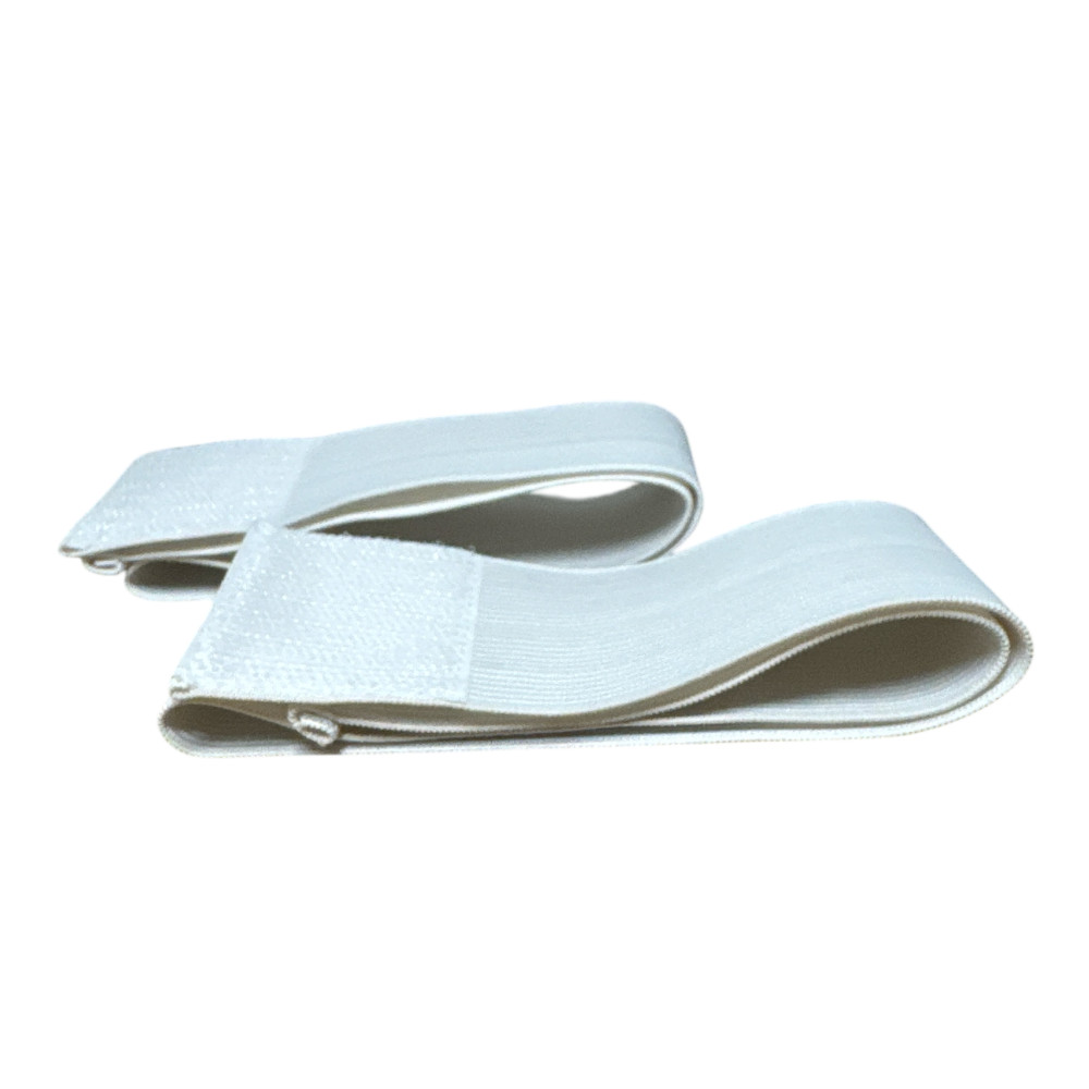 Elastische band, 5 cm breed en 50 cm lang, met klittenband, wit. Voor het bevestigen van rubberen elektroden, iontoforese-sets en wifi-stimulatiemodules.