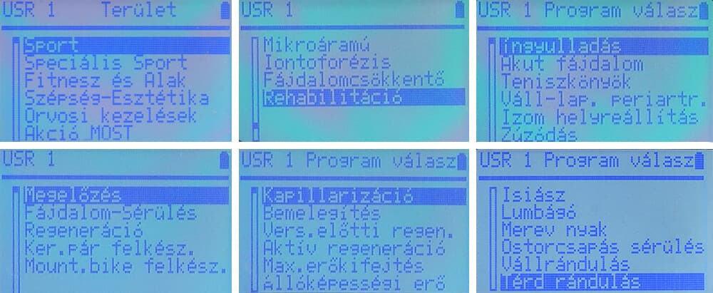 De SPORT-programma's van de apparaten zijn bruikbaar bij spiergerelateerde blessures, aandoeningen, verlies van kracht en spiermassa, enz. Niet alleen voor patiënten, maar ook voor sporters. De parameters van de verschillende spierbehandelprogramma's verschillen, waardoor het ene programma zorgt voor verbetering van de spierdoorbloeding (capillarizatie), het ontspannen van een stijve spier, het vergroten van basis- of maximale kracht of het vergroten van spiermassa.