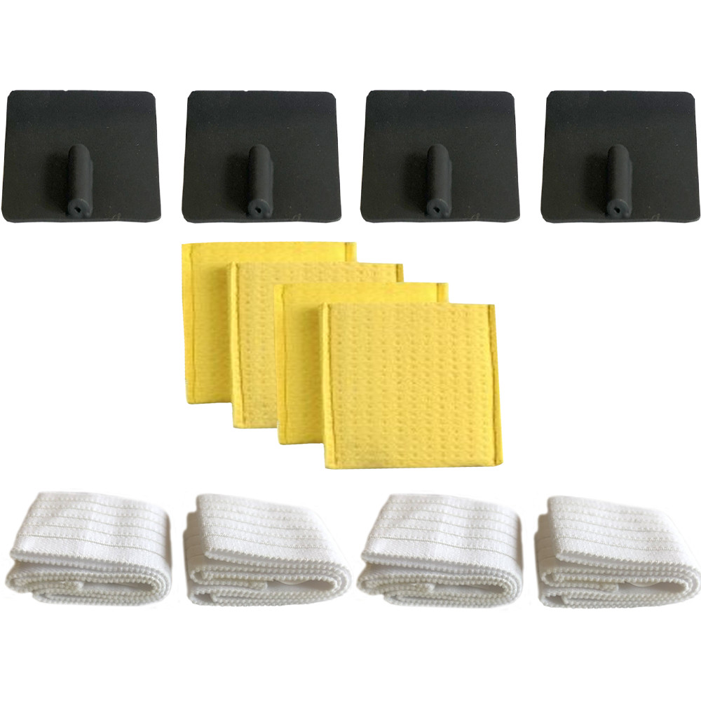 Set voor iontoforesebehandeling. Prijs is inclusief: 4 rubber elektroden (45 x 50 mm), 4 sponshoezen, 4 elastische banden met klittenband.