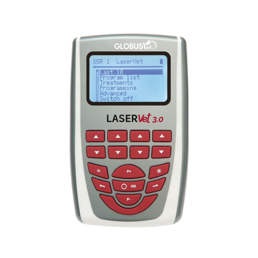 LaserVet 3.0: veterinaire laser met maximaal 3W vermogen, met behandelingsprogramma's voor kat, hond, paard, kleine zoogdieren, reptielen en vogels.