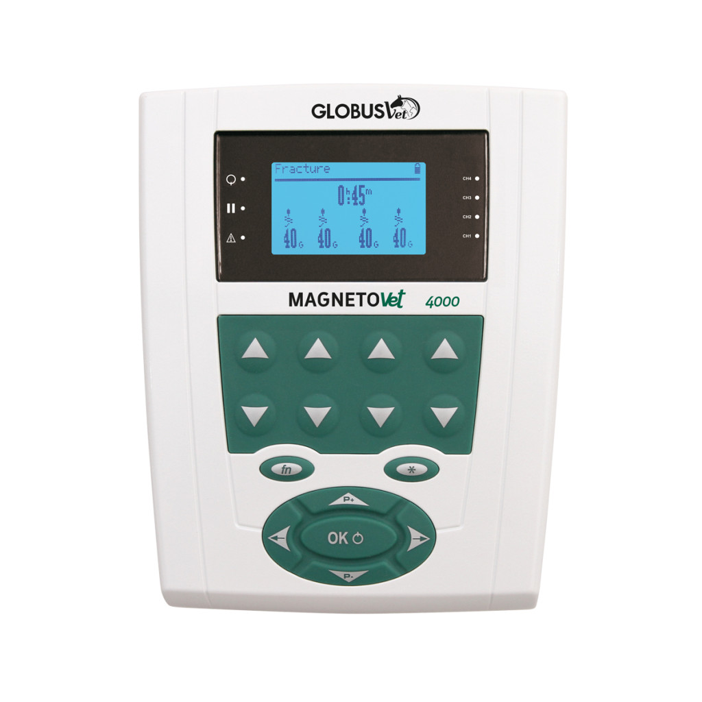 De MagnetoVet 4000 is het topklasse magnetotherapie-apparaat van Globus, ideaal voor dierenartspraktijken, dierziekenhuizen, sportstallen en veeleisende dierenbezitters. Het kan gelijktijdig twee dieren behandelen, met maximaal 4 kanalen en 63 vooraf ingestelde programma's.