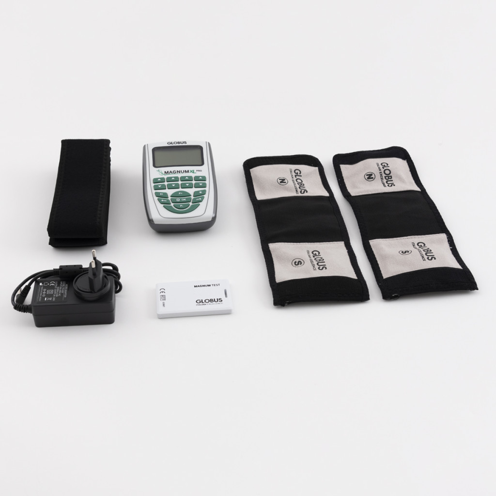 Prijs omvat: Magnum XL Pro apparaat, 2 flexibele magneetspoelen (30x10 cm), netvoeding, 1 magneetveldtester
