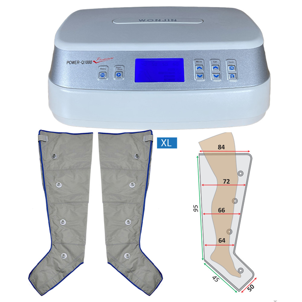 Q-1000 Premium beenbehandelset voor lymfoedeem met een lymfmassageapparaat. Set met een XL paar beenmanchetten. Geschikt voor thuisgebruik en professioneel gebruik.