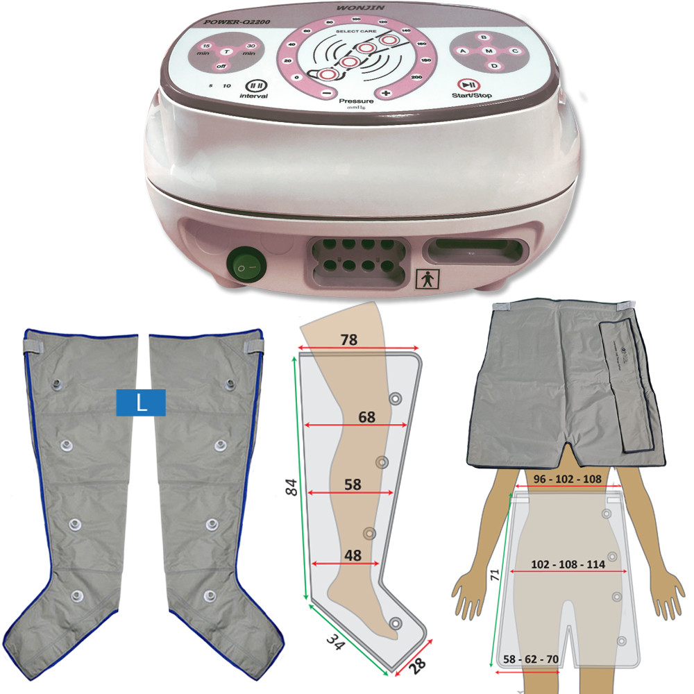 De Power Q-2200 maakt het mogelijk de belangrijkste behandelparameters in te stellen en is daarom ideaal voor het onderhoud van lichte tot matige lymfoedeem- en veneuze aandoeningen thuis, evenals voor post-trombotische zorg en meer.